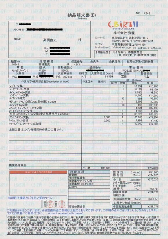 (注)オーナー様個々のお車の状態で、明細内容の変更また部品価格の変動をご考慮の上ご参照ください。 |